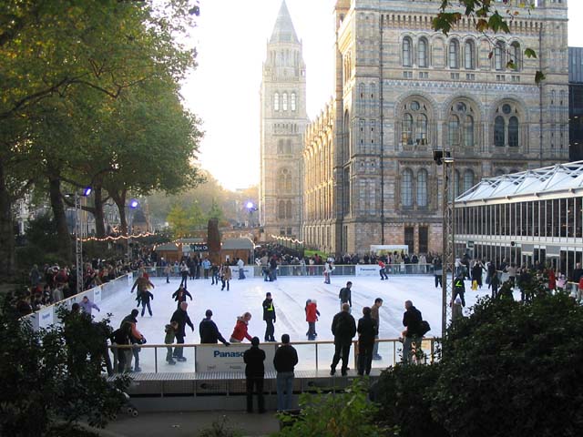 16/16 We had left our luggage at the Natural History Museum (because easyHotel wouldn't store it for us) so we went back there to pick it up. This is the ice rink by the museum with the beautiful museum in the background.